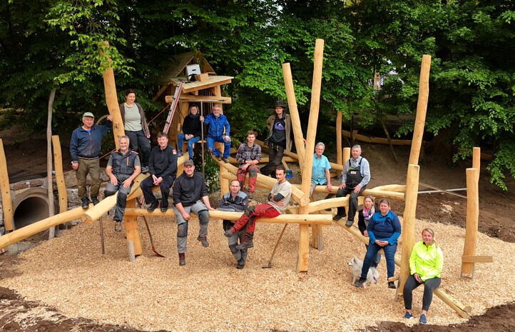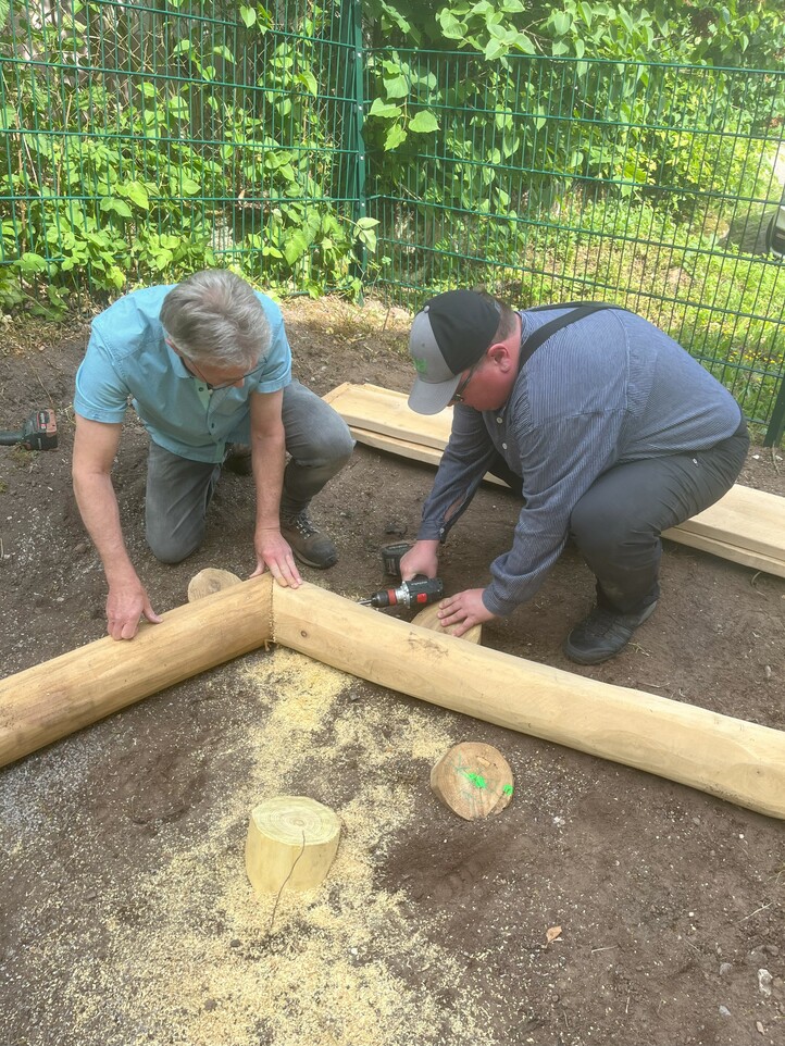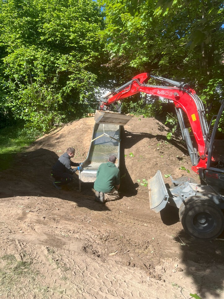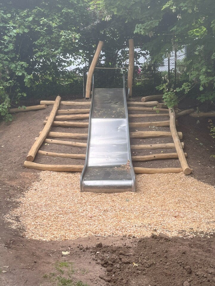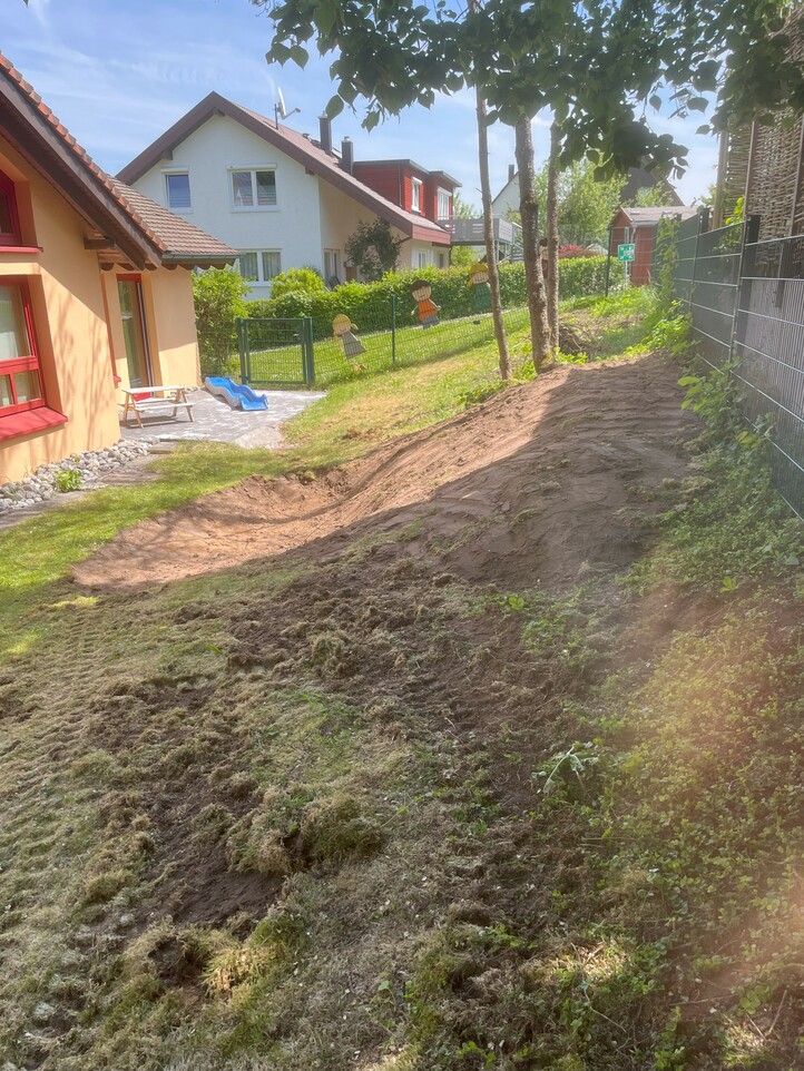 Es ist unglaublich, was in 11 Tagen harter Arbeit entstehen kann. Die Rutsche wurde neu platziert, eine neue Nestschaukel mit zwei Einzelschaukeln wurde aufgestellt, unser Röhrentunnel wurde in den Hang eingebaut und ein tolles Baumhaus mit Klettergarten ist entstanden. Der Garten im Kleinkindbereich wurde komplett neu angelegt und bekam einen Naschgarten, ein kleines Baumhaus, eine Rutsche, eine Nestschaukel und einen Sandbereich.