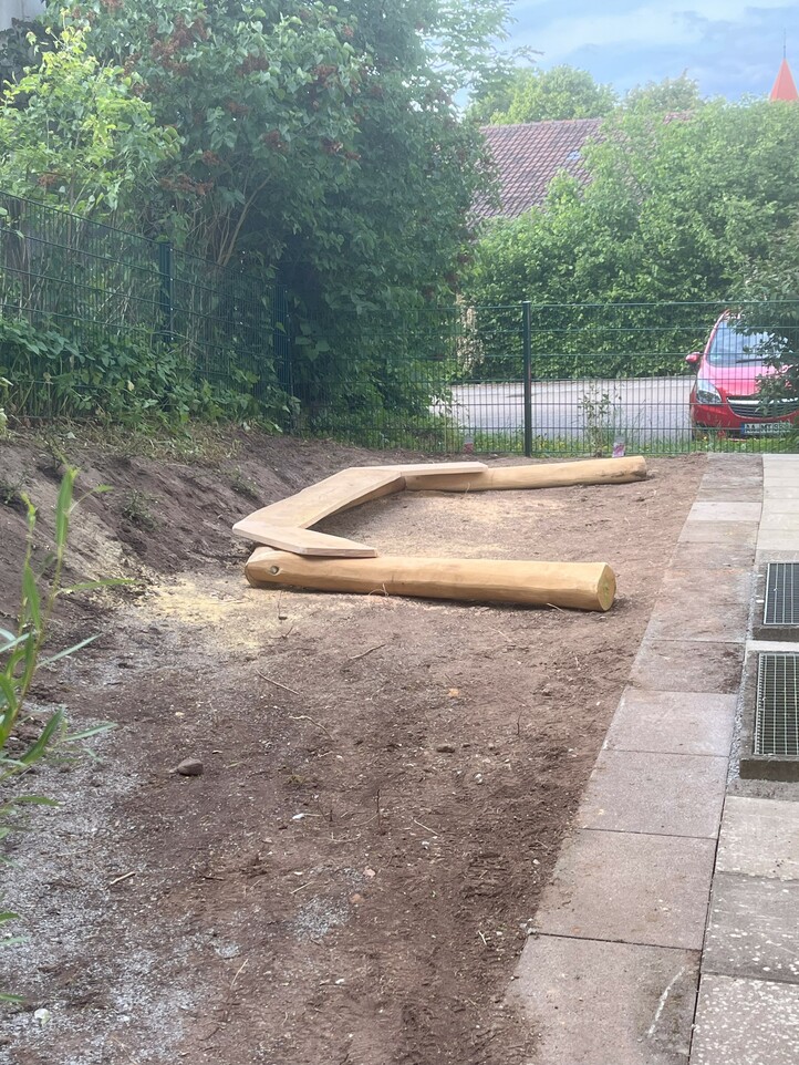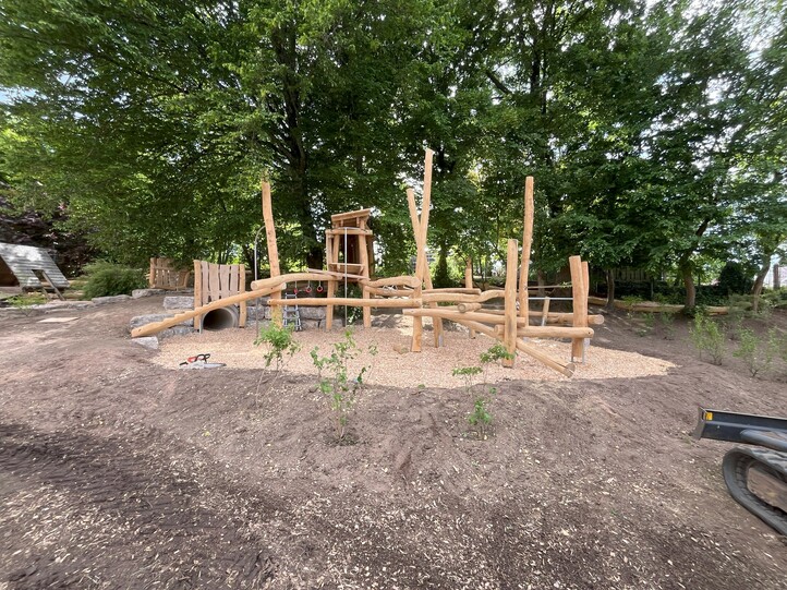 Überall wurden neue Pflanzen gepflanzt und die Fallschutzbereiche mit Sand oder Hackschnitzel befüllt. Den Rasen werden wir erst im Herbst neu einsäen, sonst hätten wir ja unseren neuen Garten erst in 8 bis 10 Wochen bespielen können.