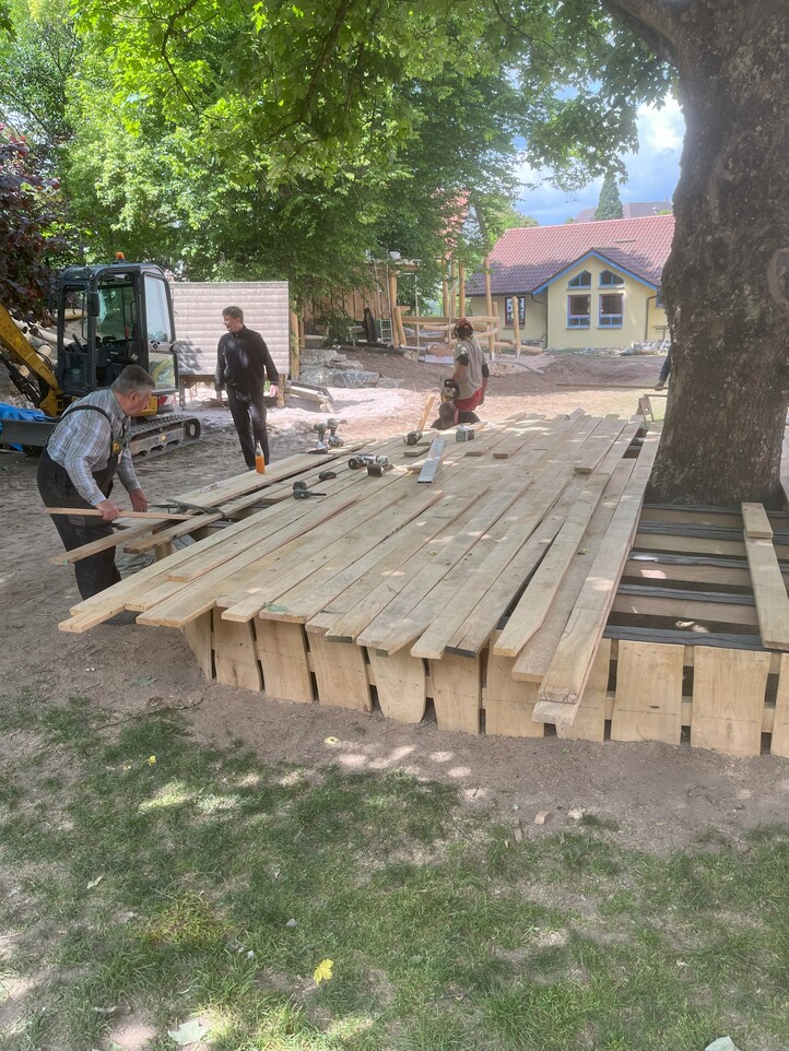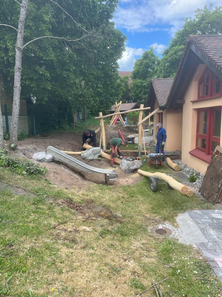 Mittlerweile ist es bestimmt schon im ganzen Dorf bekannt! Der Kindergarten hat einen neuen Spielplatz bekommen. Von Dienstag, den 13. Mai 2025 bis Dienstag, den 27. Mai 2025 wurde „geschafft“.
