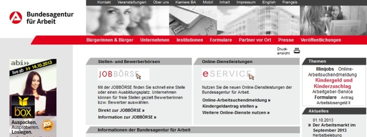 Die Stellen- und Bewerberbörse hilft Ihnen bei der Suche einer Arbeitsstelle oder Ausbildungsstelle. Informieren Sie sich ausführlicher auf den Seiten der Homepage der Bundesagentur für Arbeit.