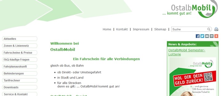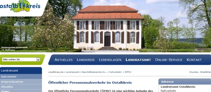 Auf der Homepage des Ostalbkreises finden Sie Informationen über Verkehrsunternehmen, Fahrscheine, sowie aktuelle Nachrichten. Lesen Sie mehr über das Nahverkehrsnetz im Ostalbkreis.
